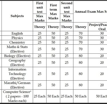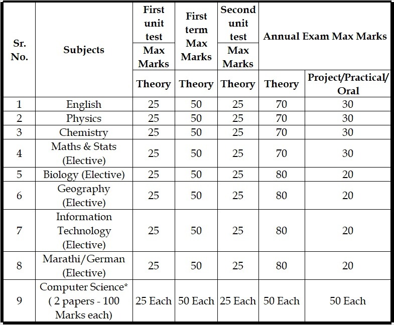 Student has to obtain a minimum of 35% marks in each subject on an average i.e. A+B+C+D should be 35% in order to be promoted to SYJC (Standard 12th) class.